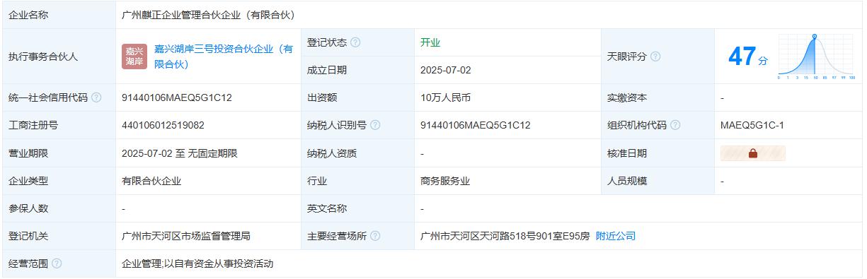 天眼查信息显示,广州麒正为2025年7月2日注册成立的新公司,实际控制人为张晓琳,在公开资料中,张晓琳为海岸投资创始合伙人以及湖岸投资 CIO,主要从事不良资产投资。