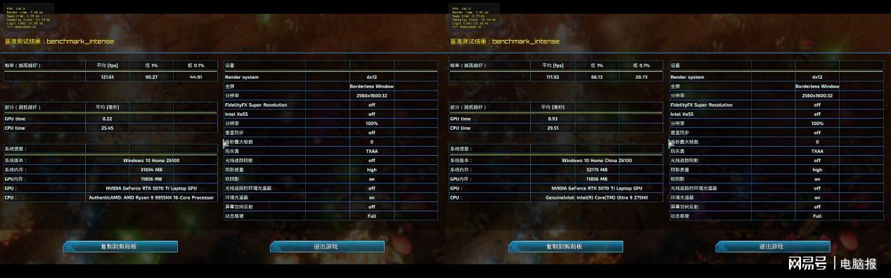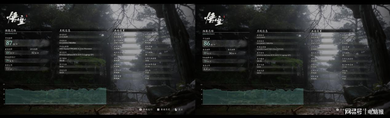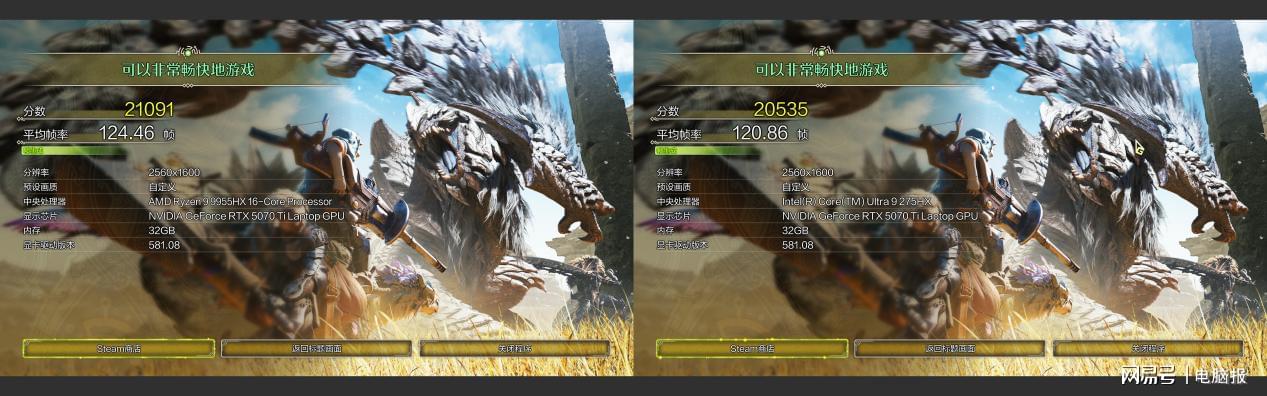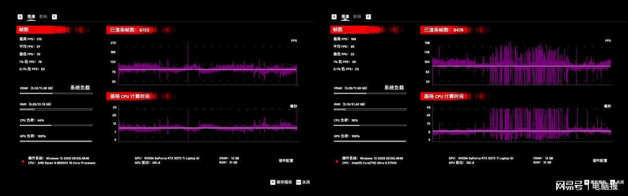 游戏性能对比(以下左图为锐龙9 9955HX)
