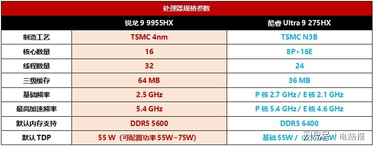 规格对比:锐龙9 9955HX更适合发烧电竞本