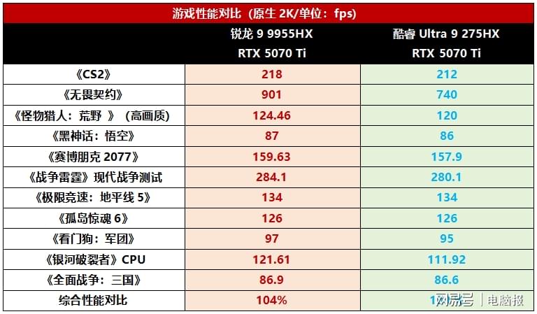 实战测试:锐龙9 9955HX综合游戏性能胜出,专业性能领先21%