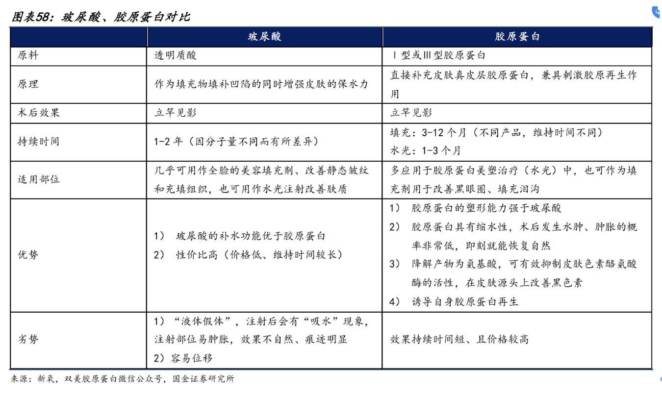 国金证券:玻尿酸和胶原蛋白都是抗衰老的注射材料,胶原蛋白塑形效果更优+诱导再生。
