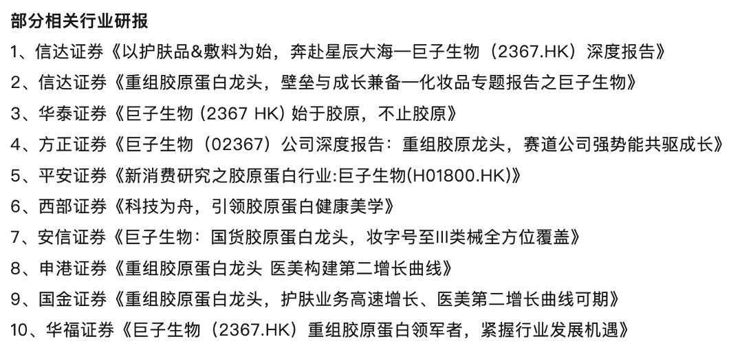 而从券商角度来看,研报叙事更偏向市场趋势和投资逻辑导向,研报中对比玻尿酸与重组胶原蛋白的表述,意在为投资者提供差异化的行业分析,反映当前生物材料领域的竞争格局变化。